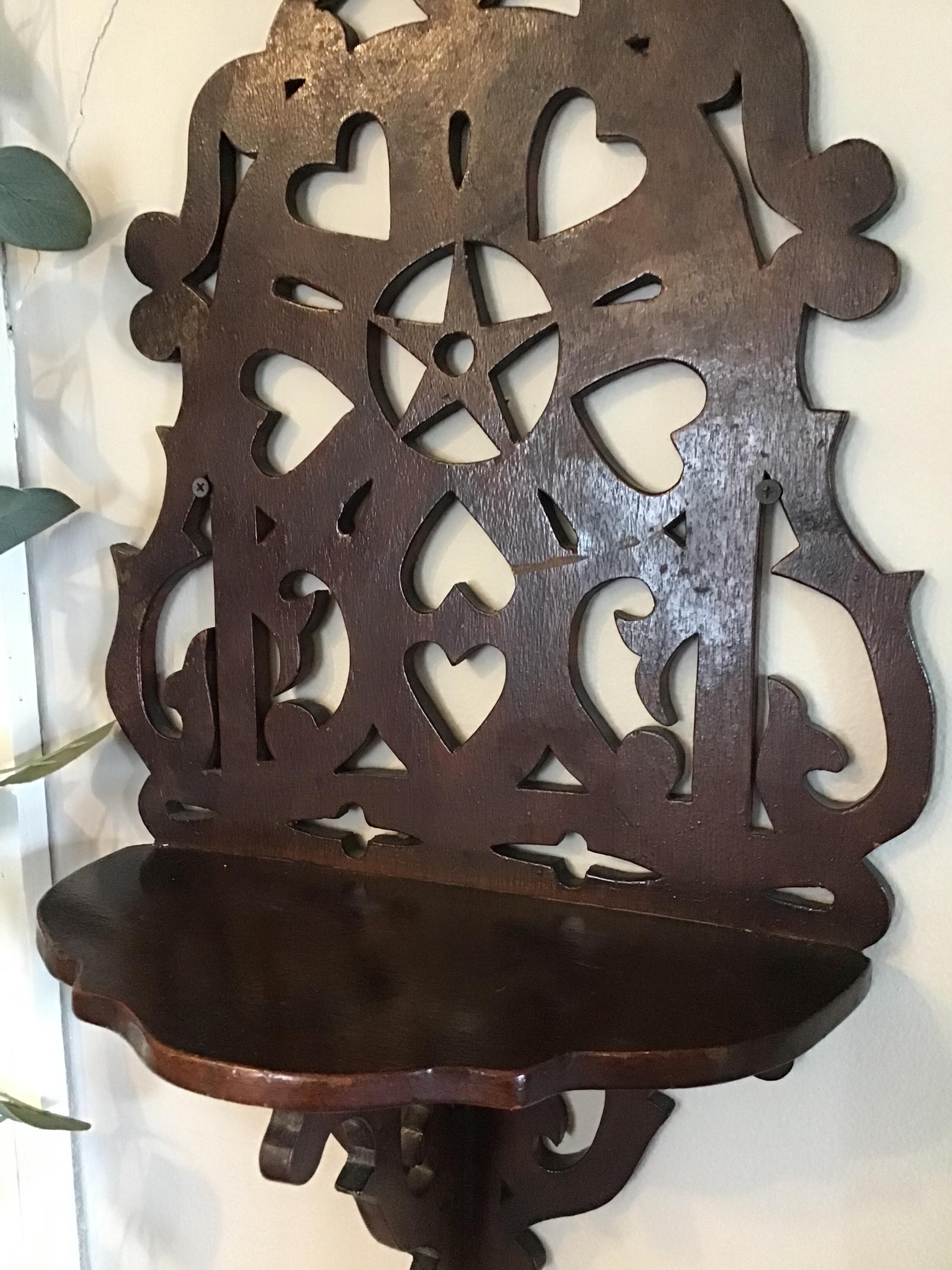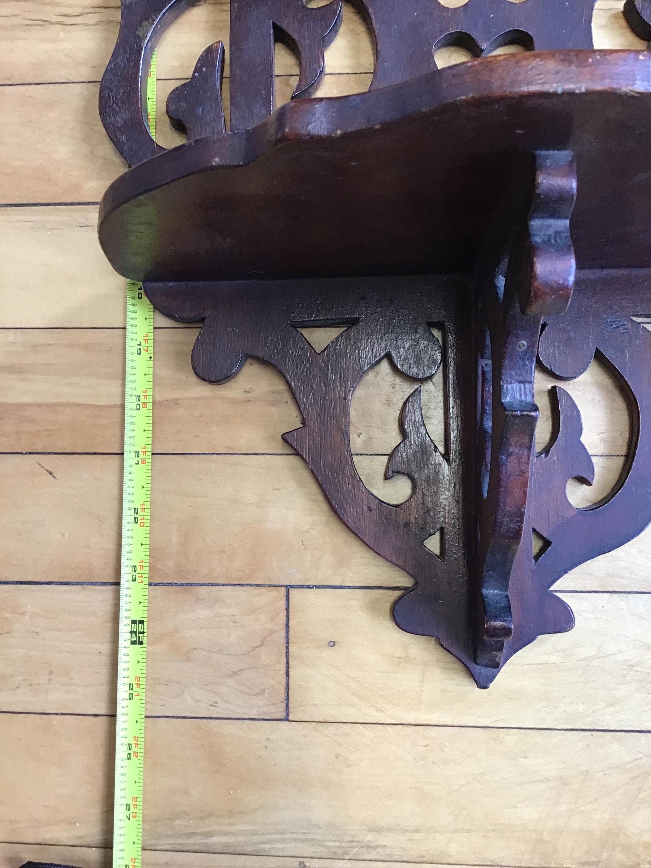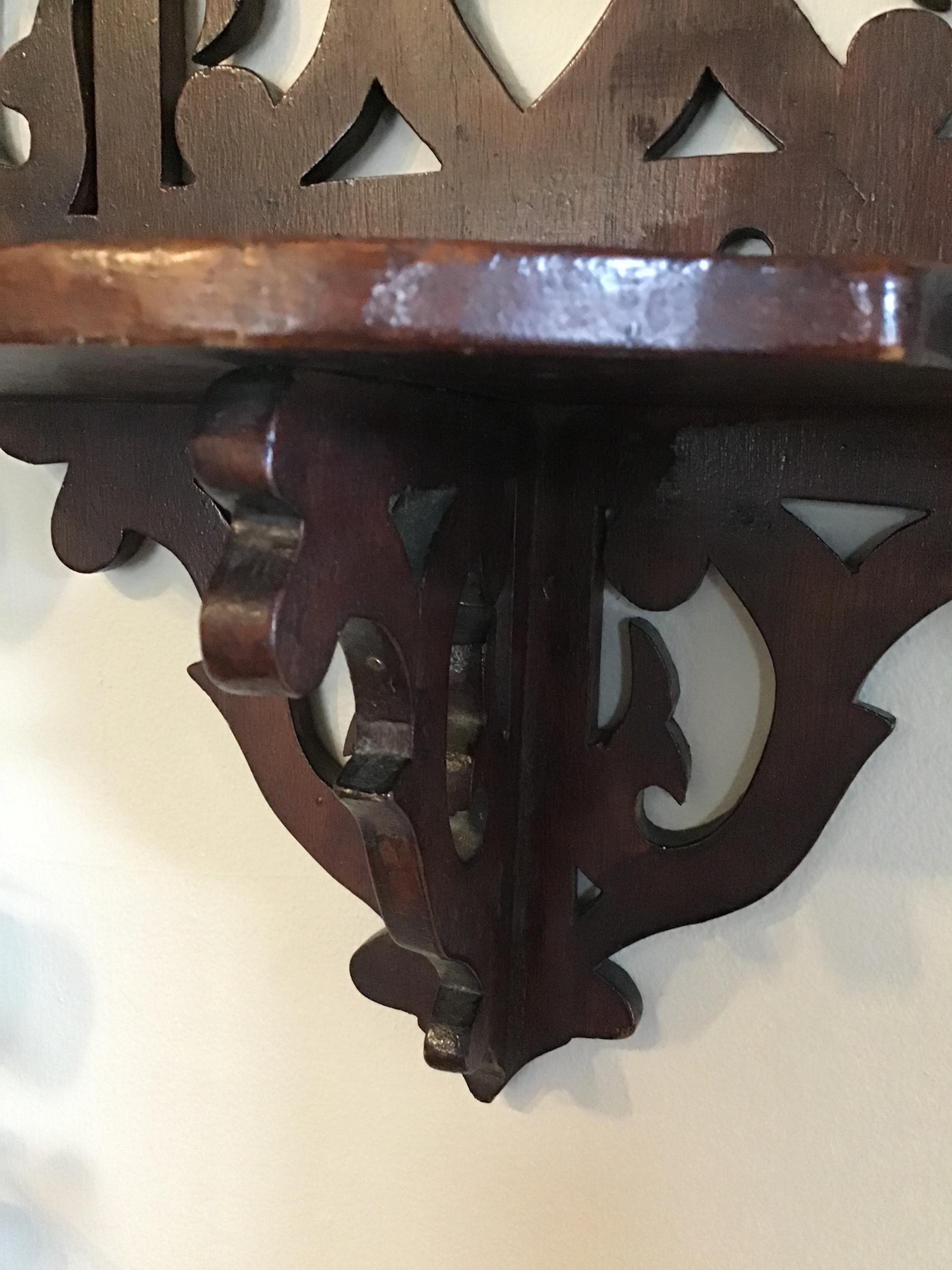 Stunningly beautiful carved wood shelf made of walnut in the late 19th to early 20th century. Wall mount style with beautiful details and generous 6 inch deep shelf for displaying your decor.