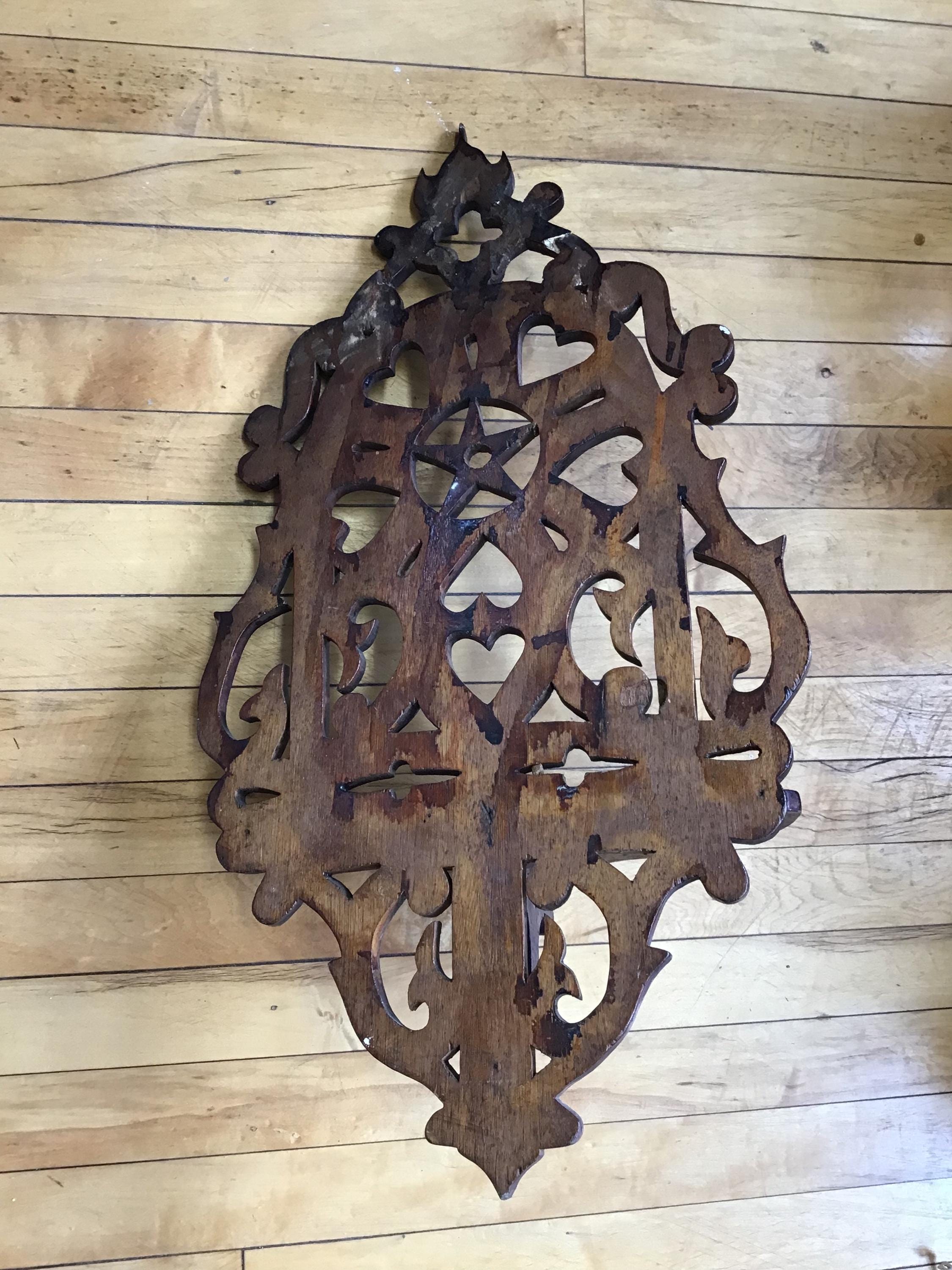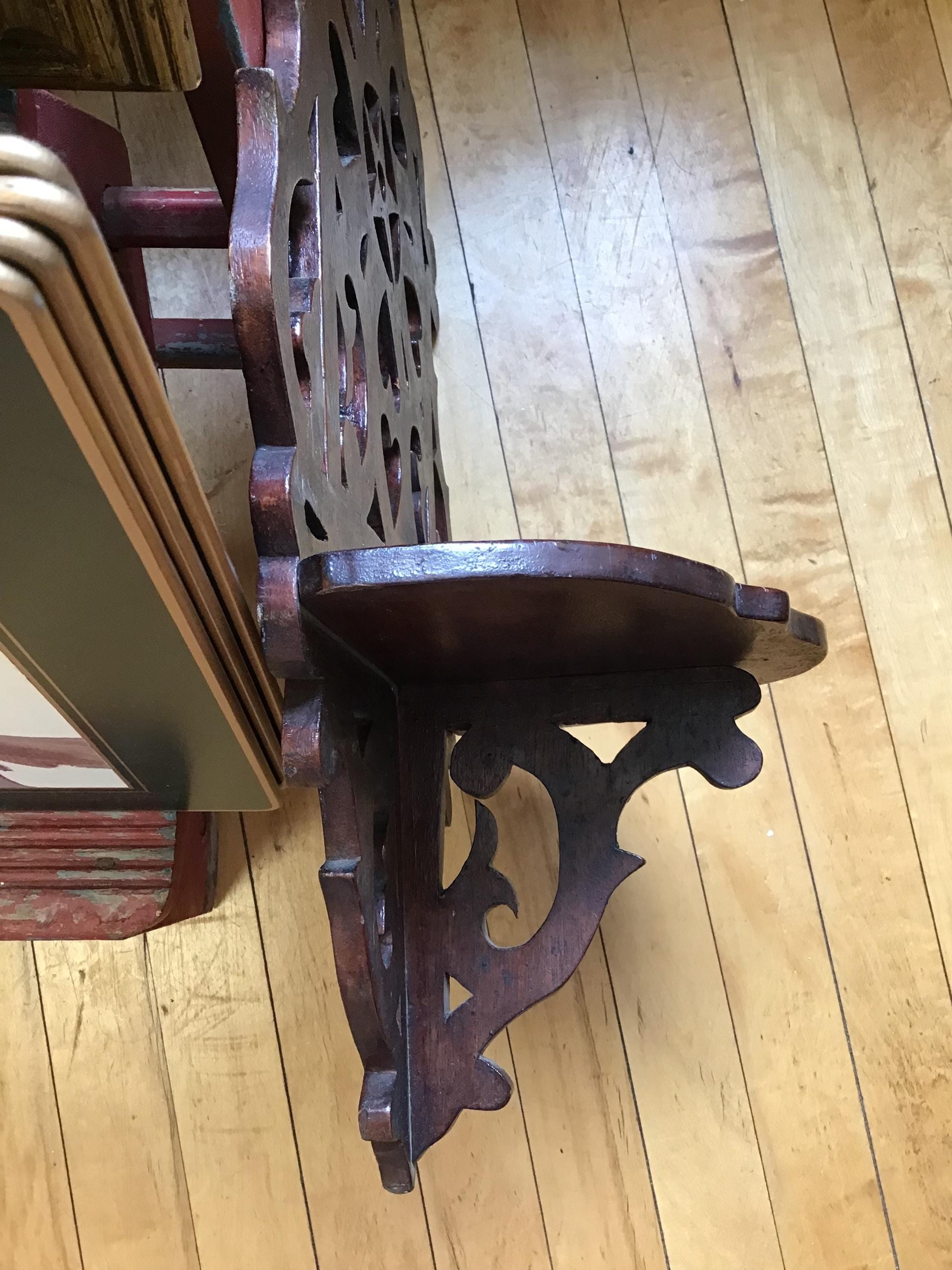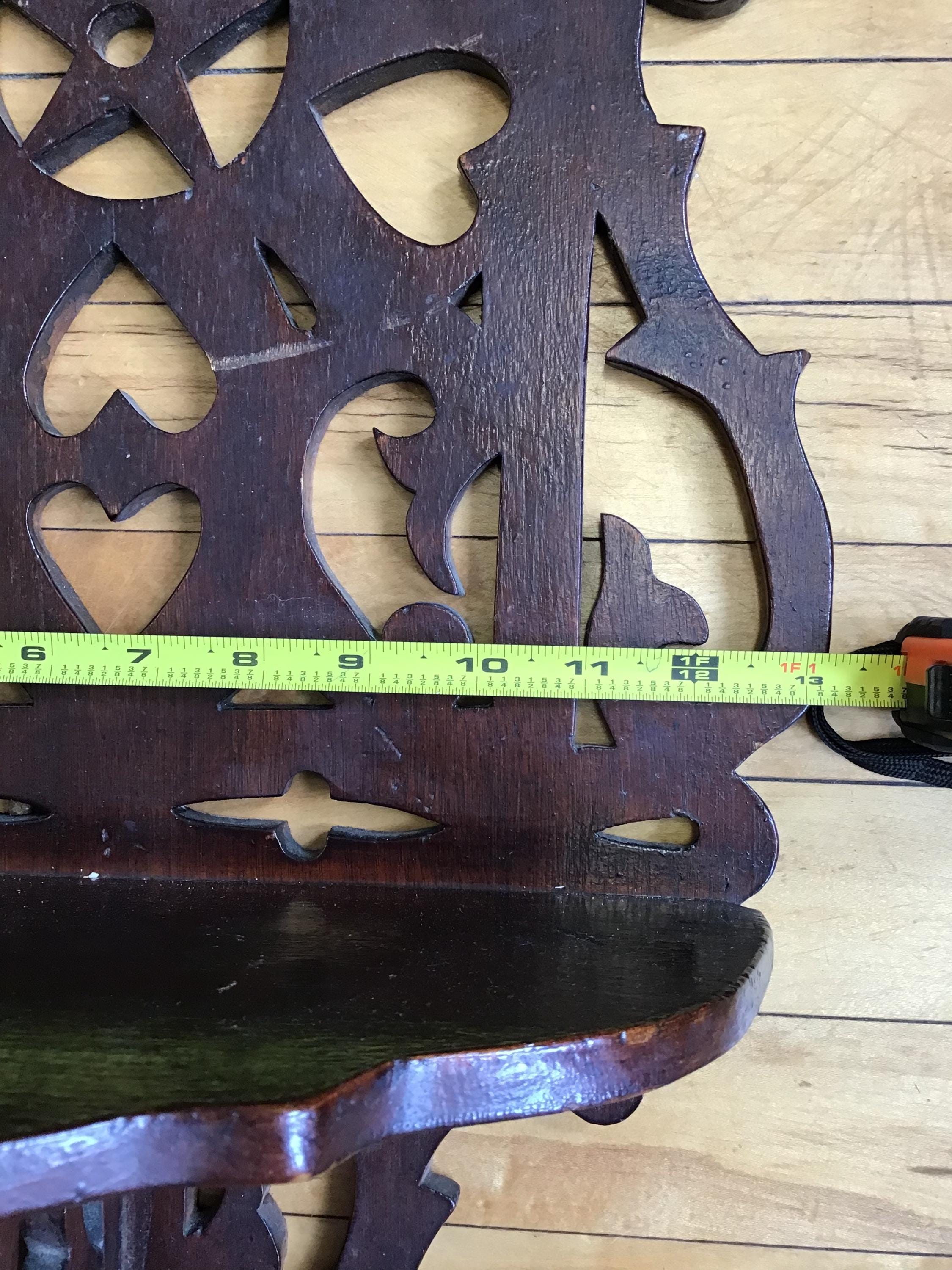 Stunningly beautiful carved wood shelf made of walnut in the late 19th to early 20th century. Wall mount style with beautiful details and generous 6 inch deep shelf for displaying your decor.