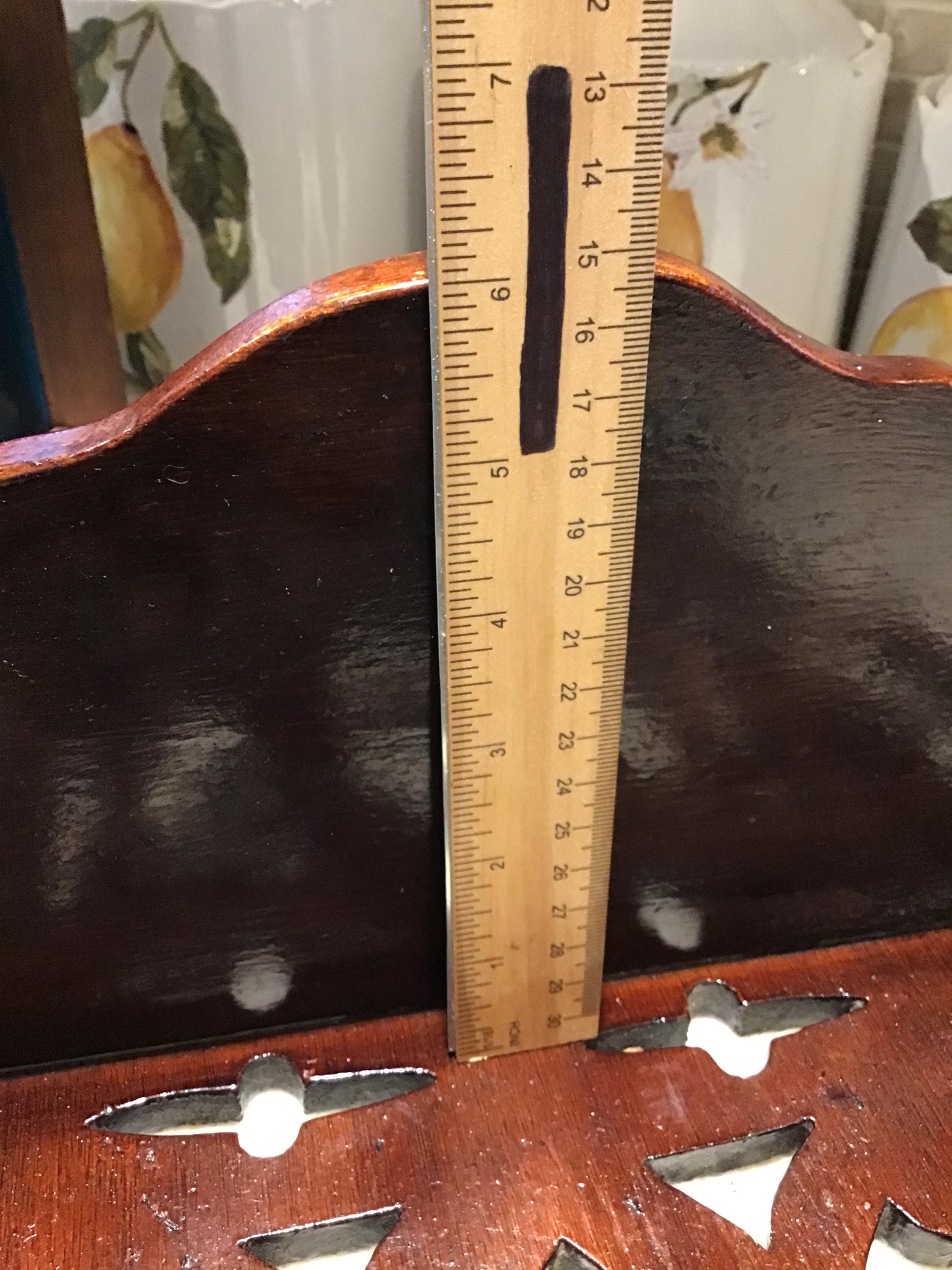 * The top of the shelf appears to have a repair that may have occurred during its production (see photos and video) Price reflects this minor defect.