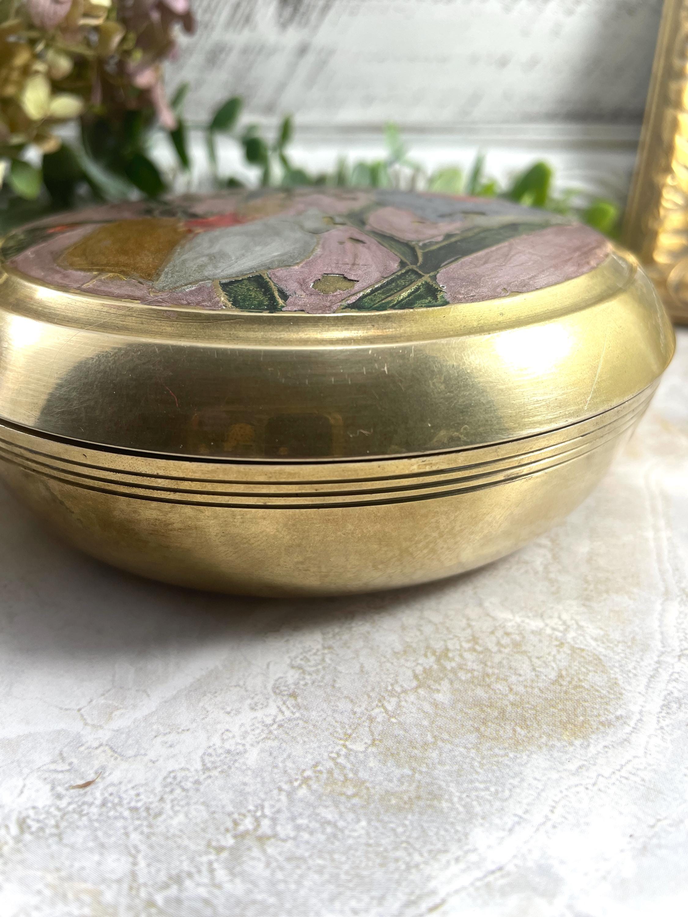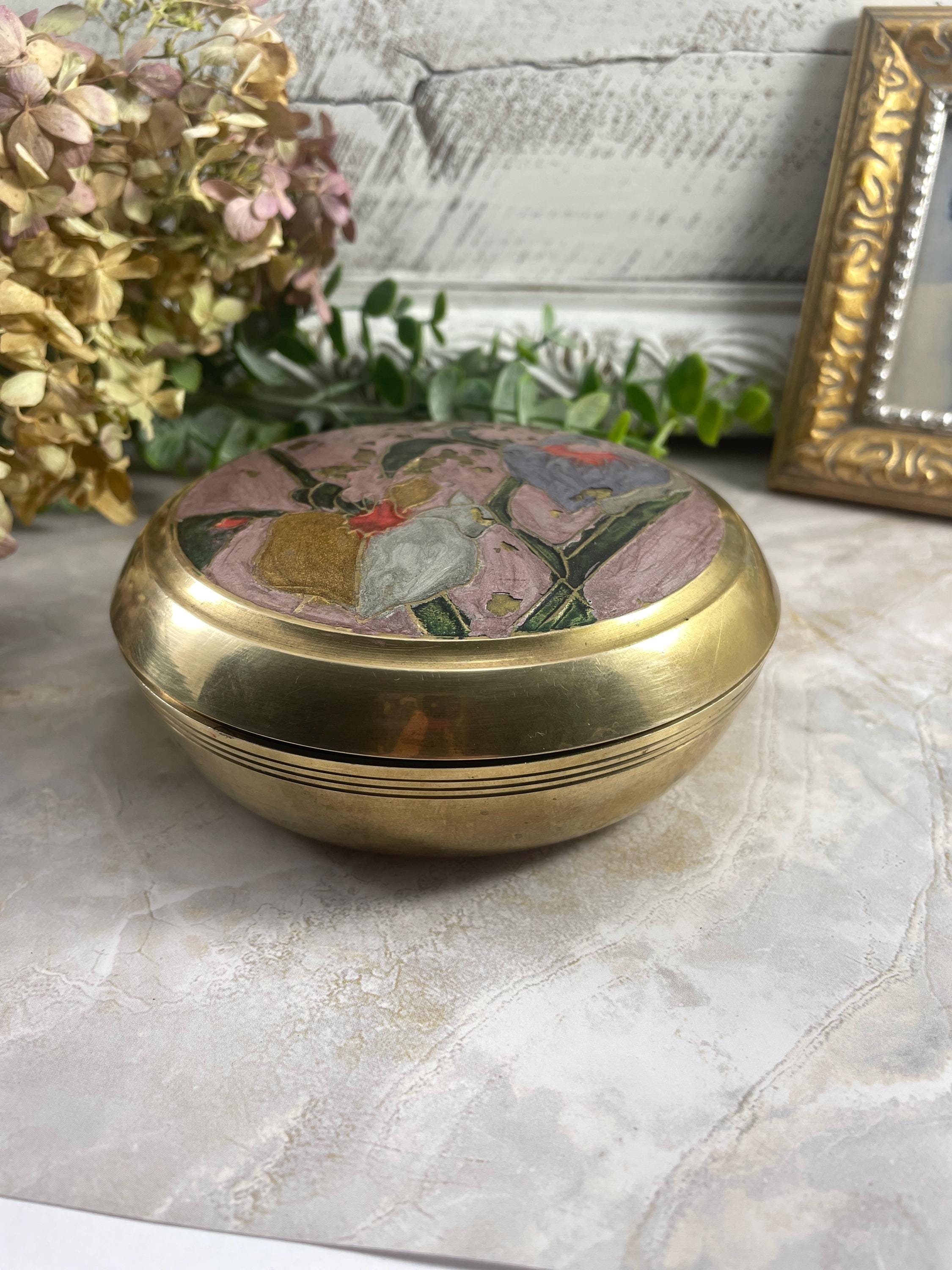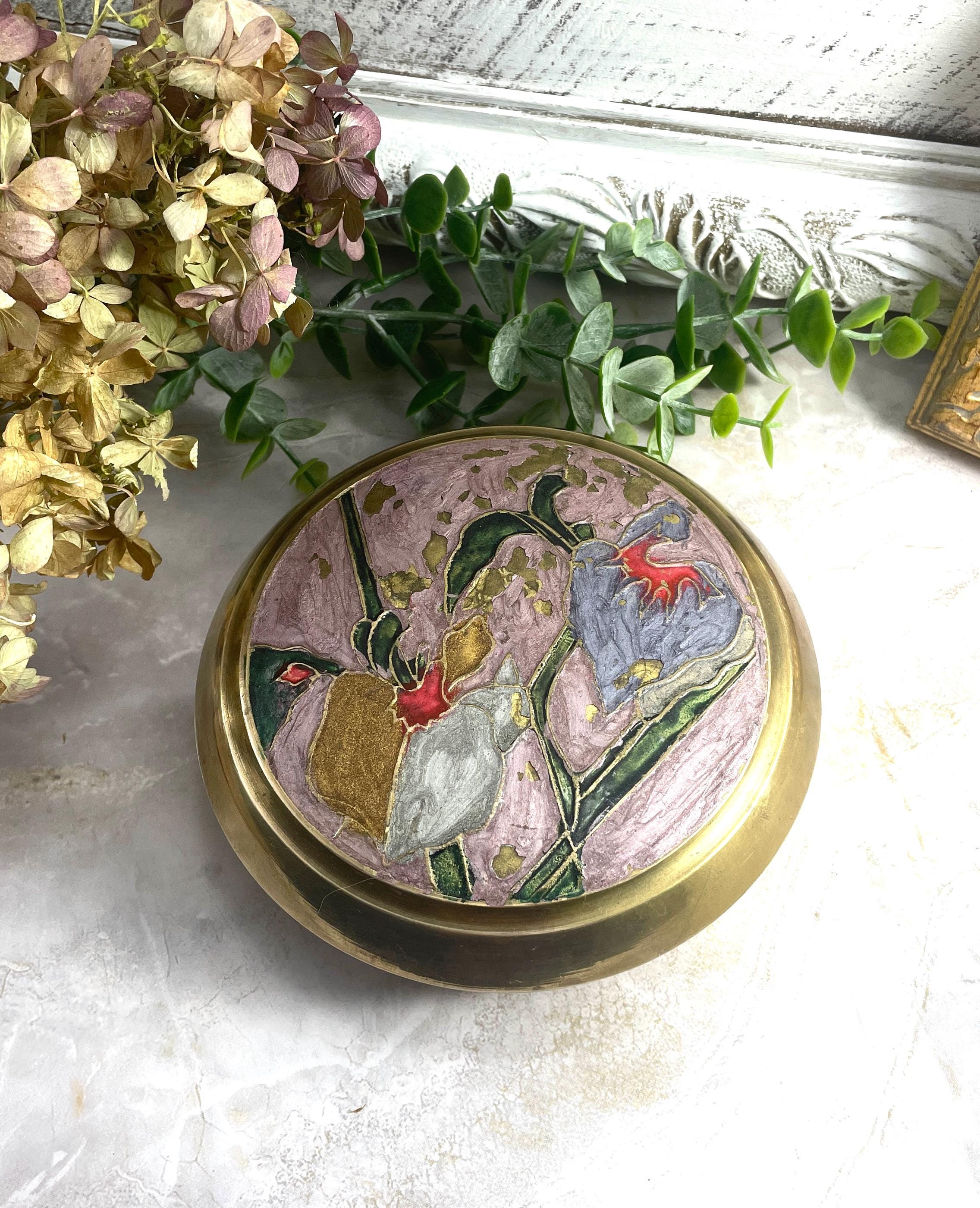 Brass enameled cloisonne Ring/trinket box with Iris flower motif