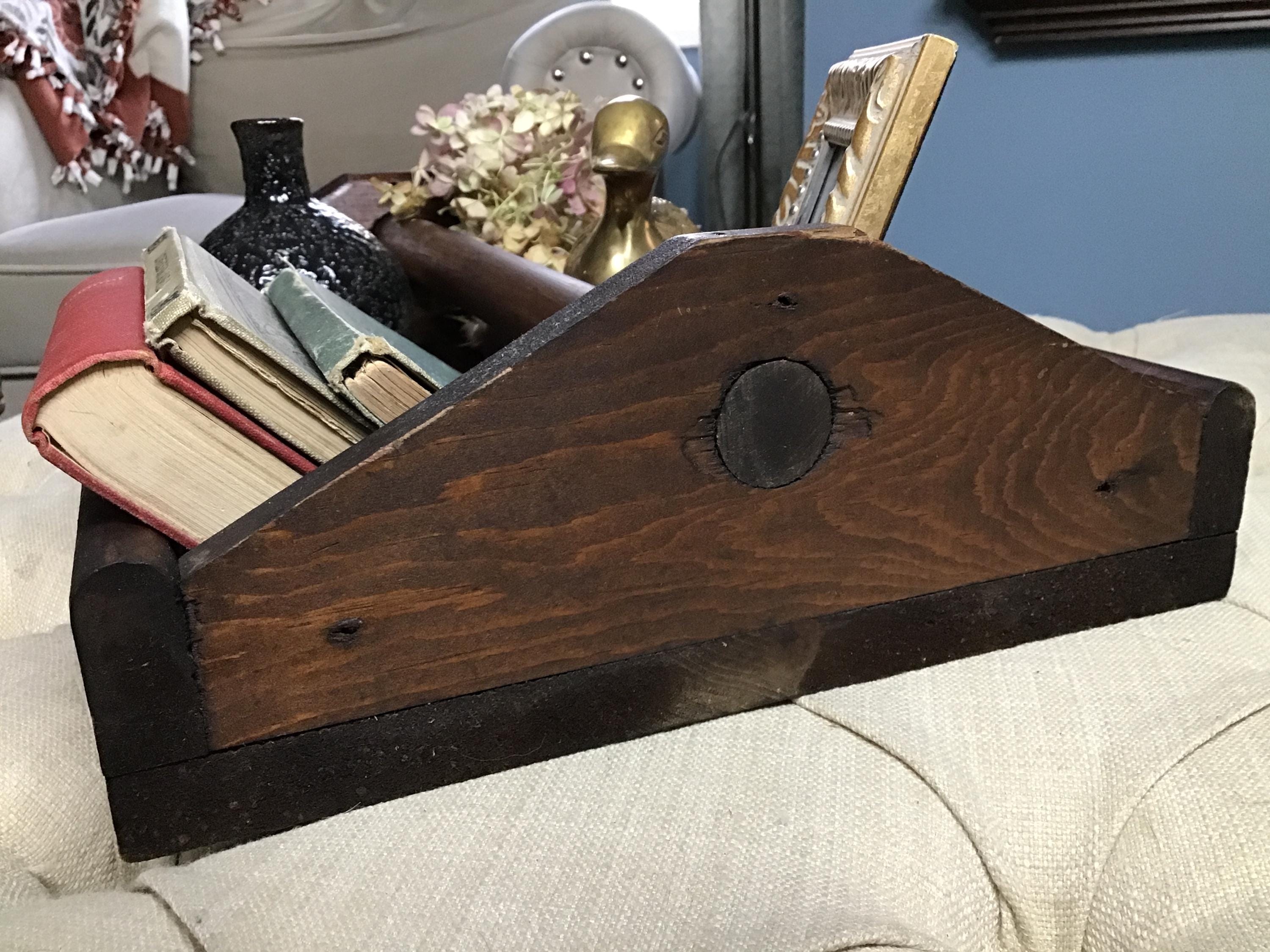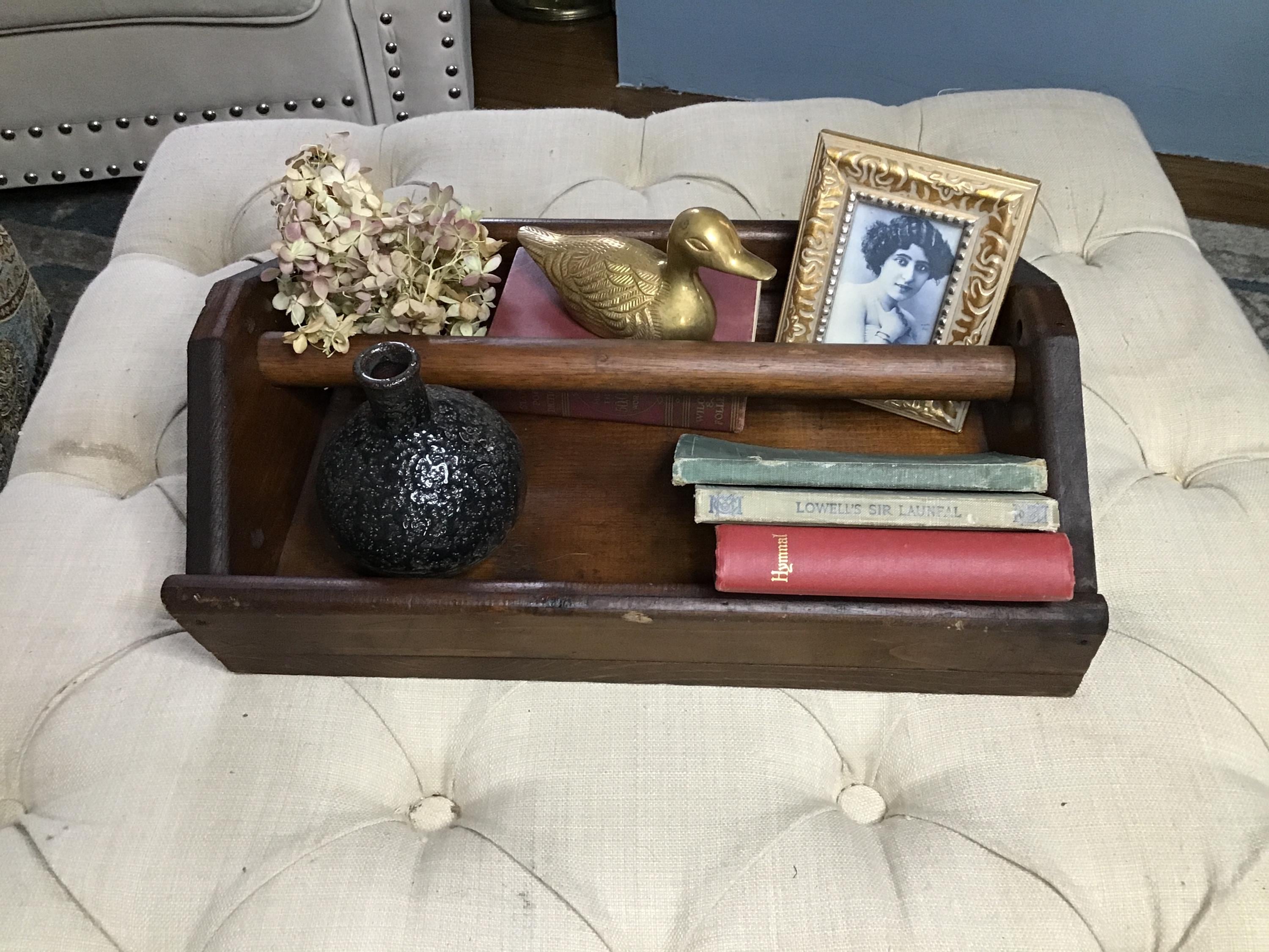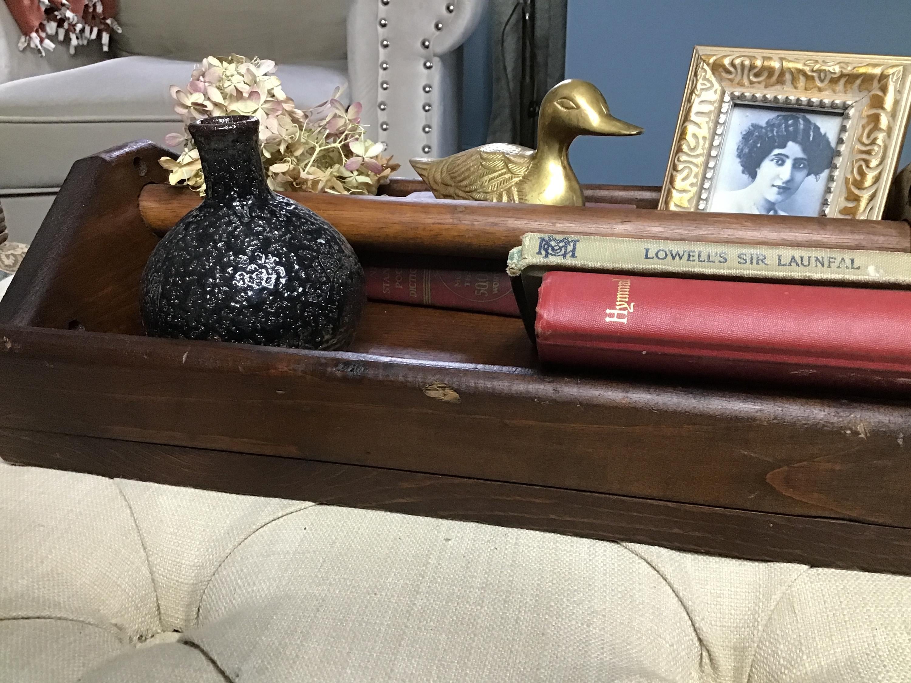 The patina on this handmade primitive tote is absolutely gorgeous! This tray would look fantastic styled on your table as a centerpiece or on your coffee table to corral your remotes. Use it in the bathroom, bedroom, kitchen, laundry, anywhere you need to have smaller items contained and stylish. Its low profile and 16 x 11 inch size makes it roomy and compact at the same time.