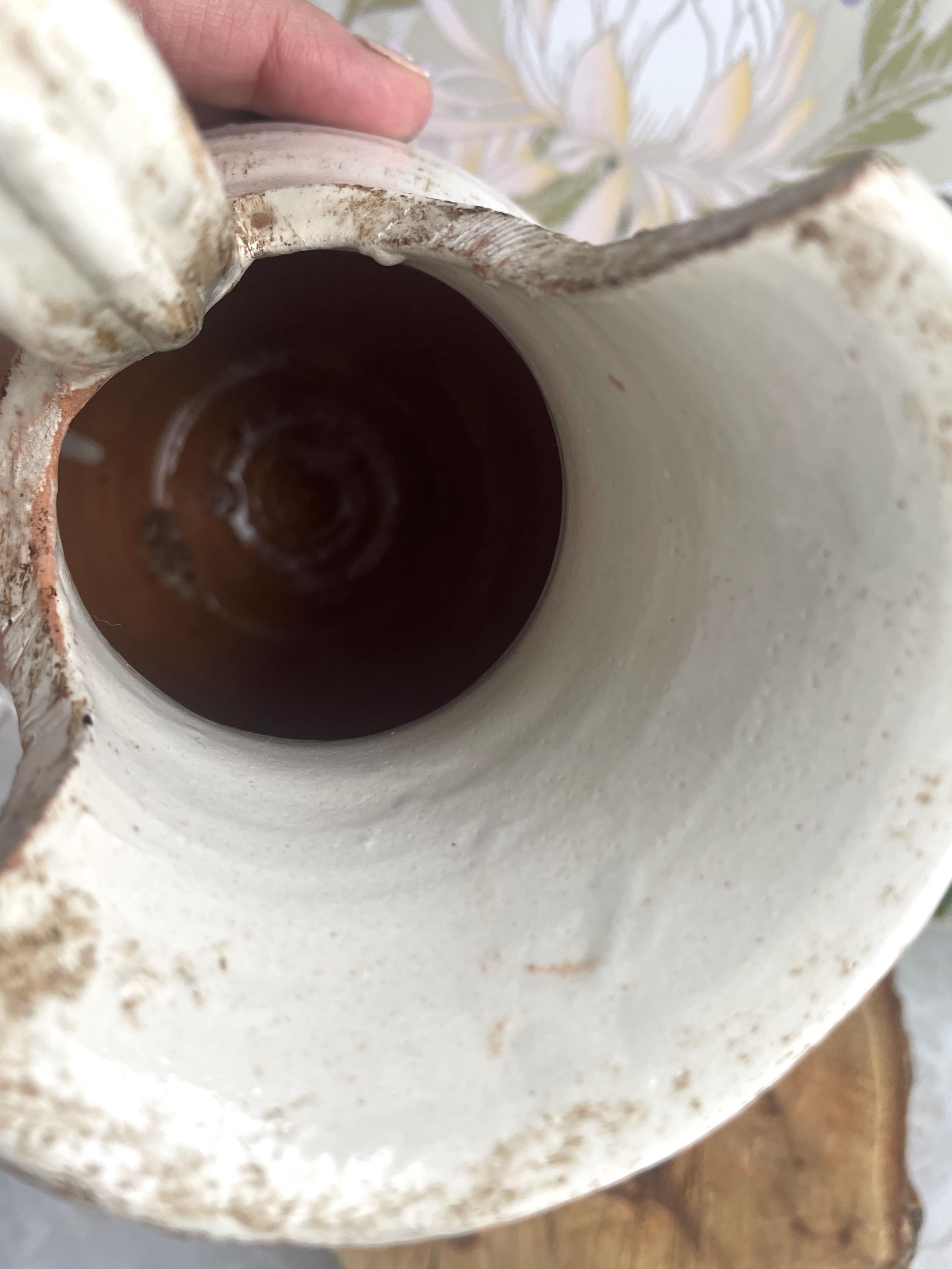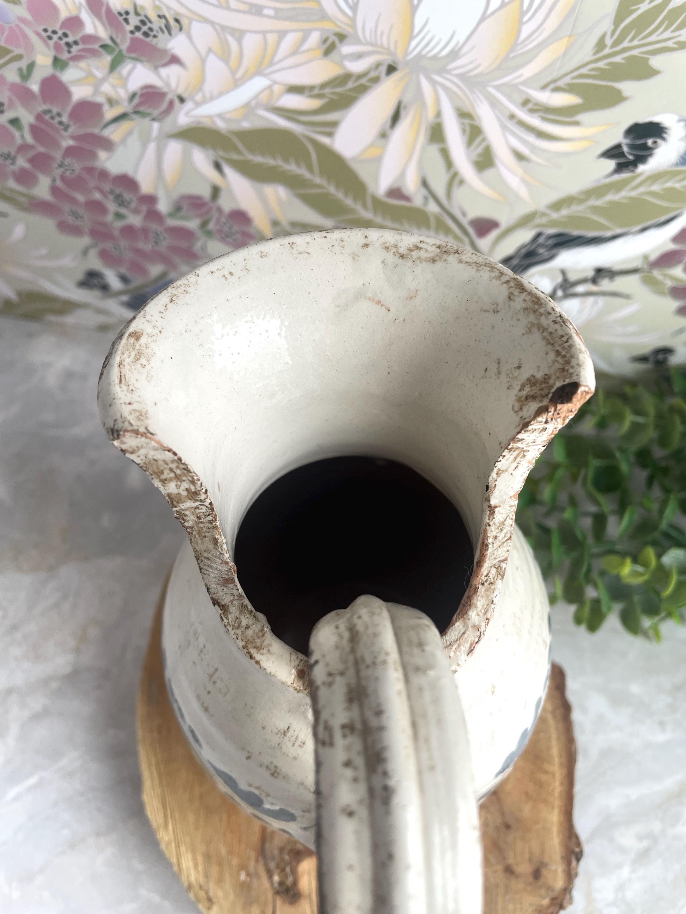 Vintage hand painted (dipinto a mano) Firenze Italian pitcher -- It is made from an earthly red stoneware and boasts a unique spout that pours beautifully, but also displays nicely. It is hand labeled on the bottom "FIRENZI DIPINTO A MANO." This piece is a beautiful addition to your decor.