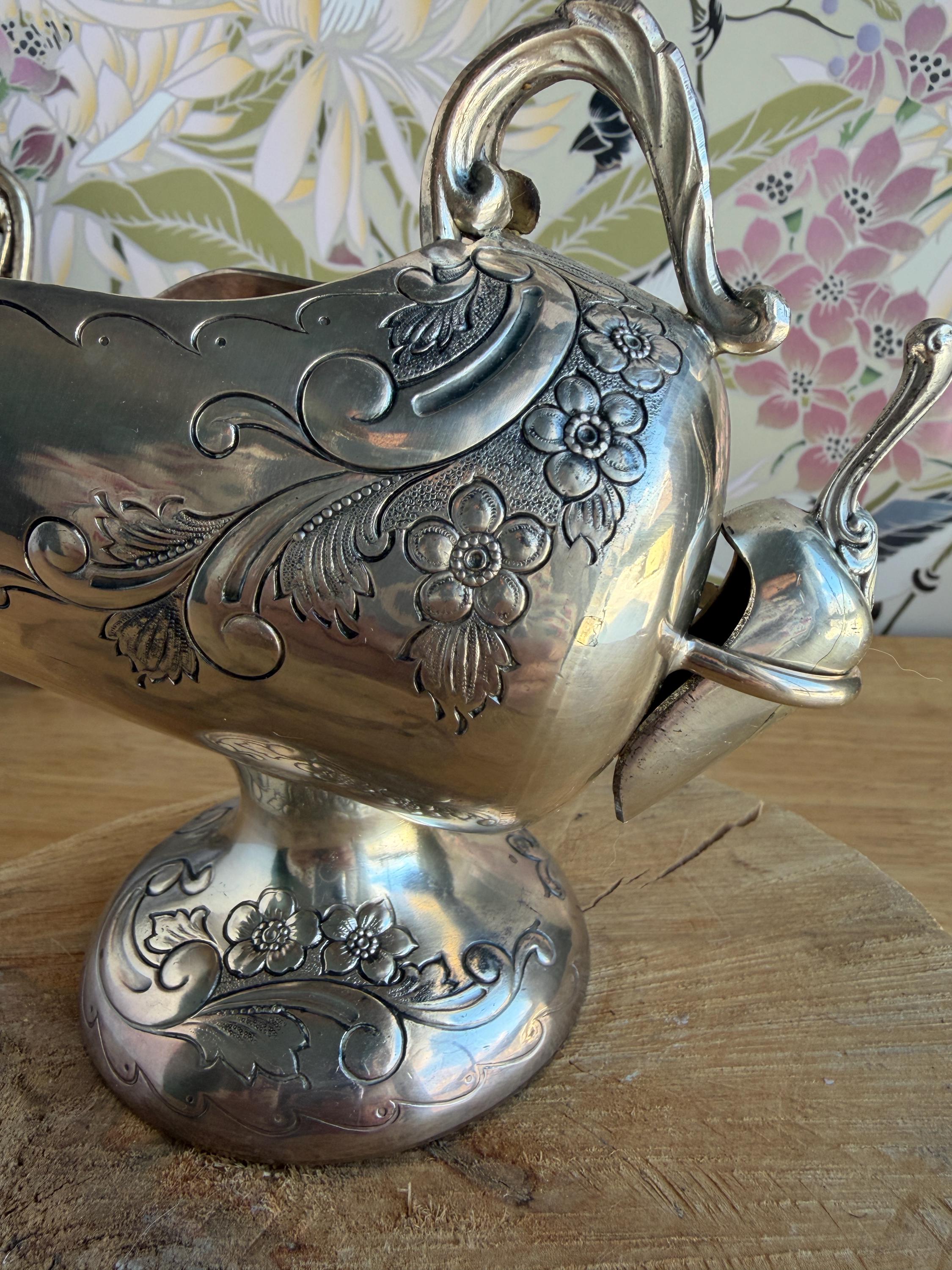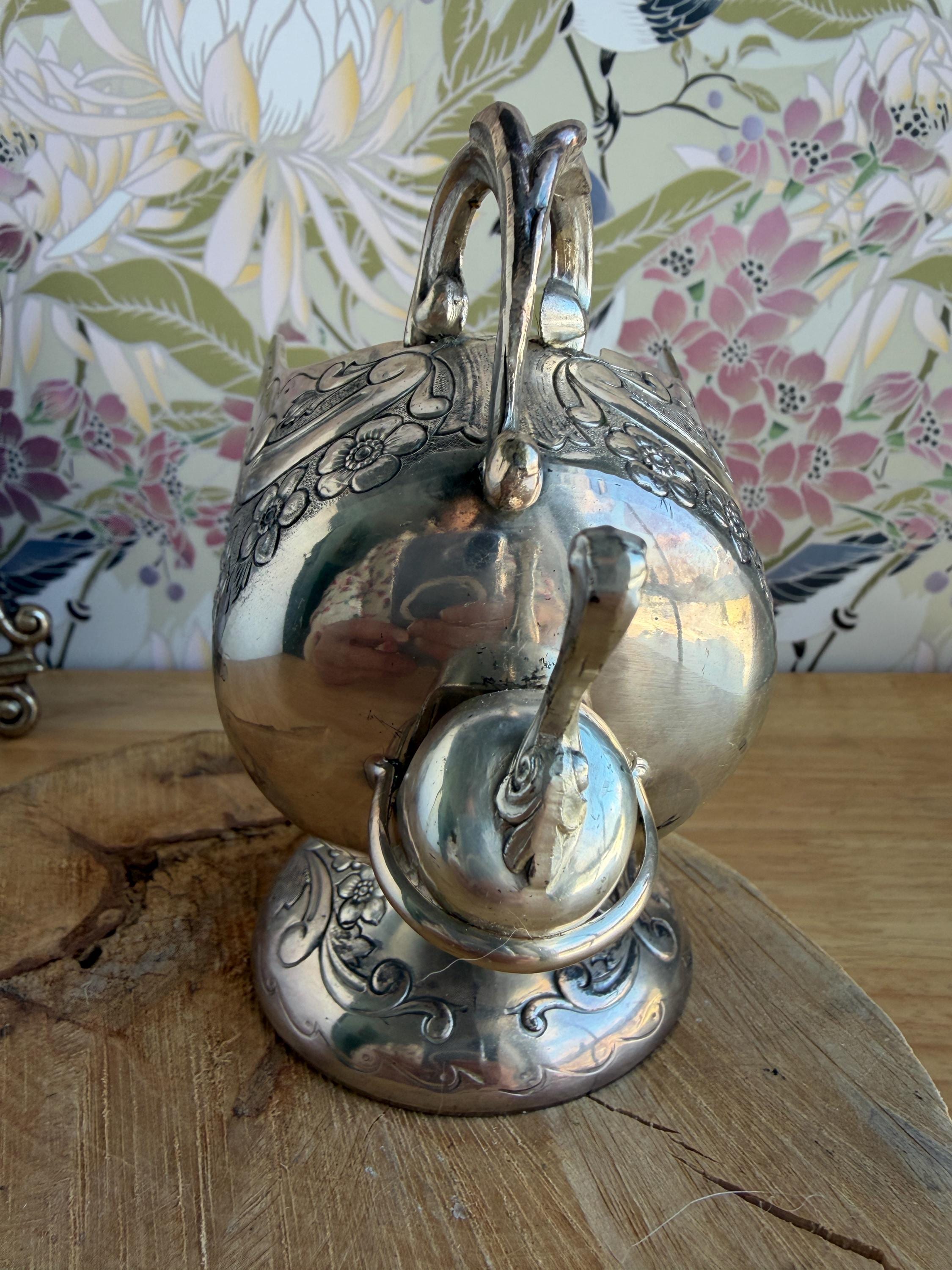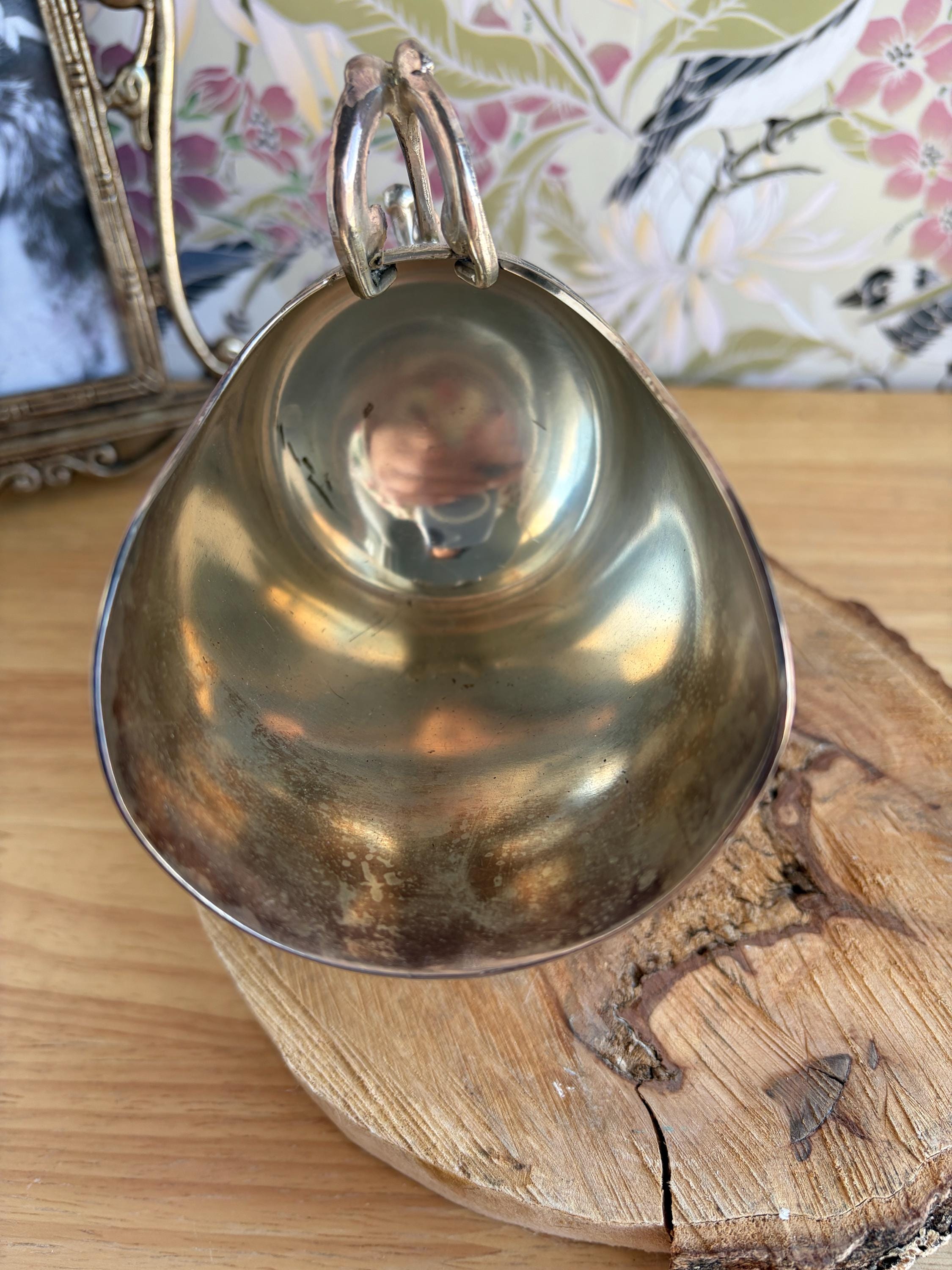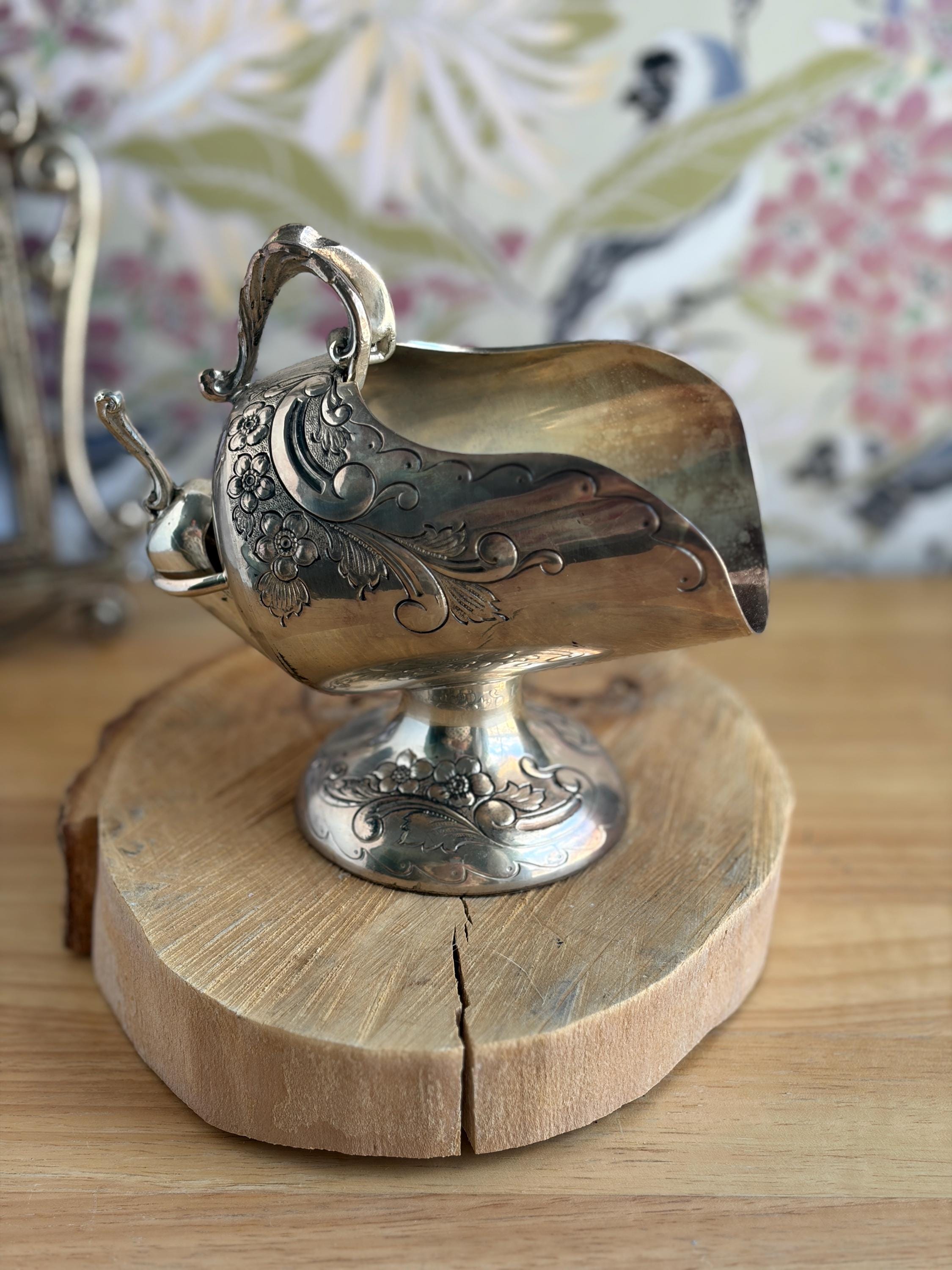 Lovely silver plated vintage sugar scuttle with small scoop. This would be a beautiful addition to your coffee routine, but it can also be used in creative ways, such as, to hold your bath salts, mints for after dinner, to hold jewelry or small trinkets on your vanity or sink, and many other ideas.