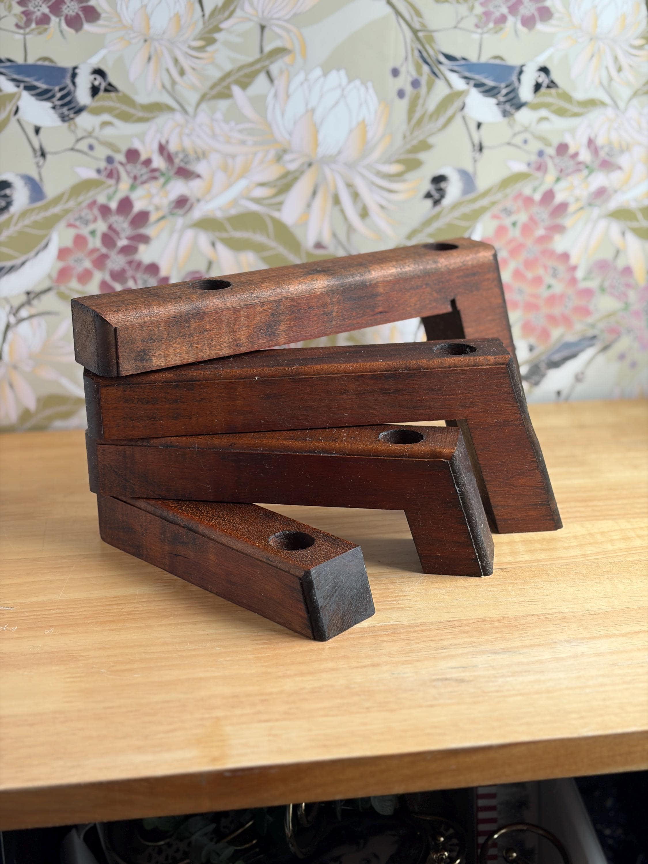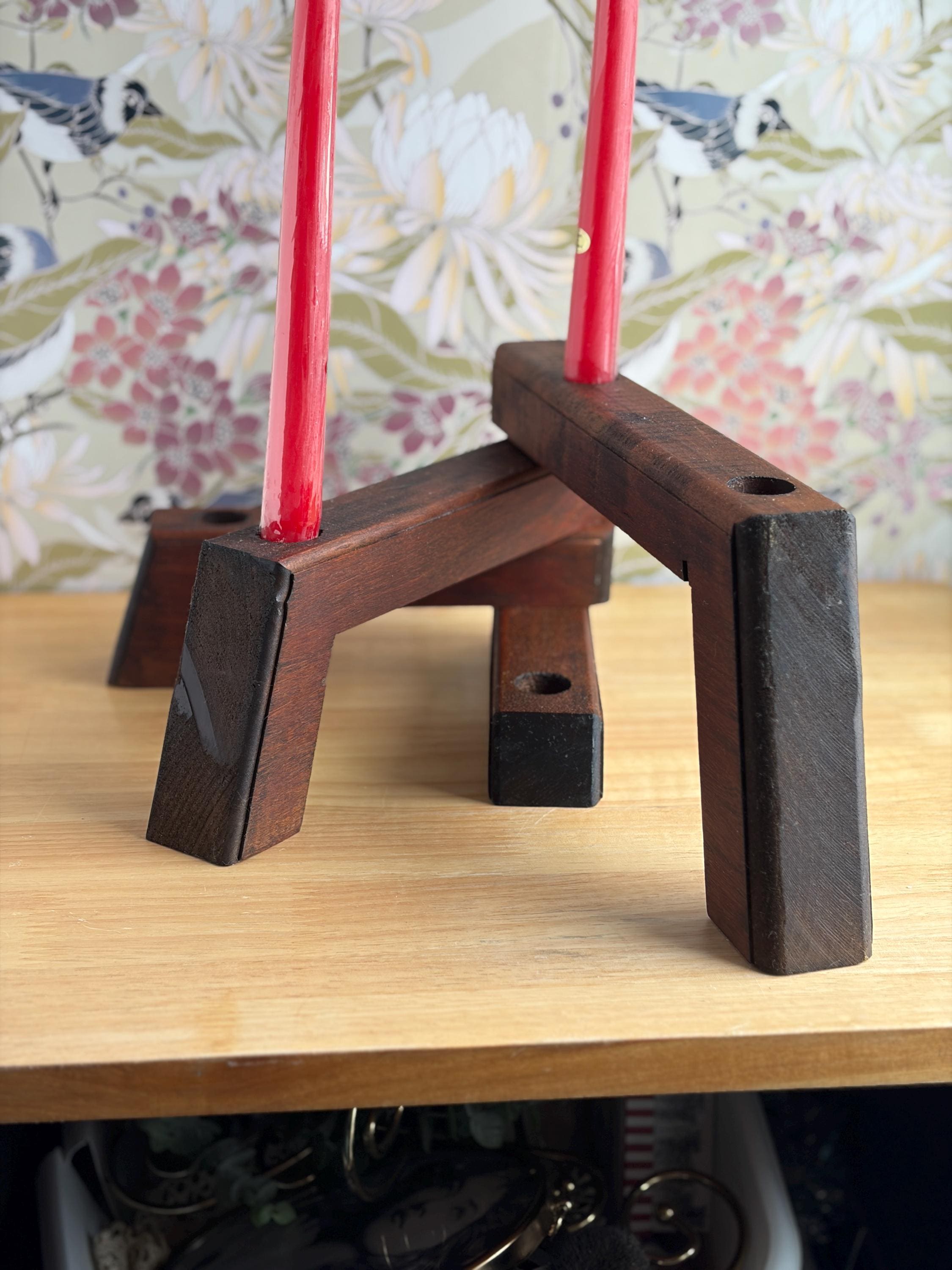 Rustic Wood Taper Candle Holder made in the Danish-modern style with 360 degree articulating arms that can be styled in multiple ways. Beautiful walnut stain and holds 5 taper candles (not included). Swivel design with 360 degree rotating arms that allow you to create a variety of customizable arrangements. Bring the Danish concept of hygge into your decor with this warm, natural wood candle holder.