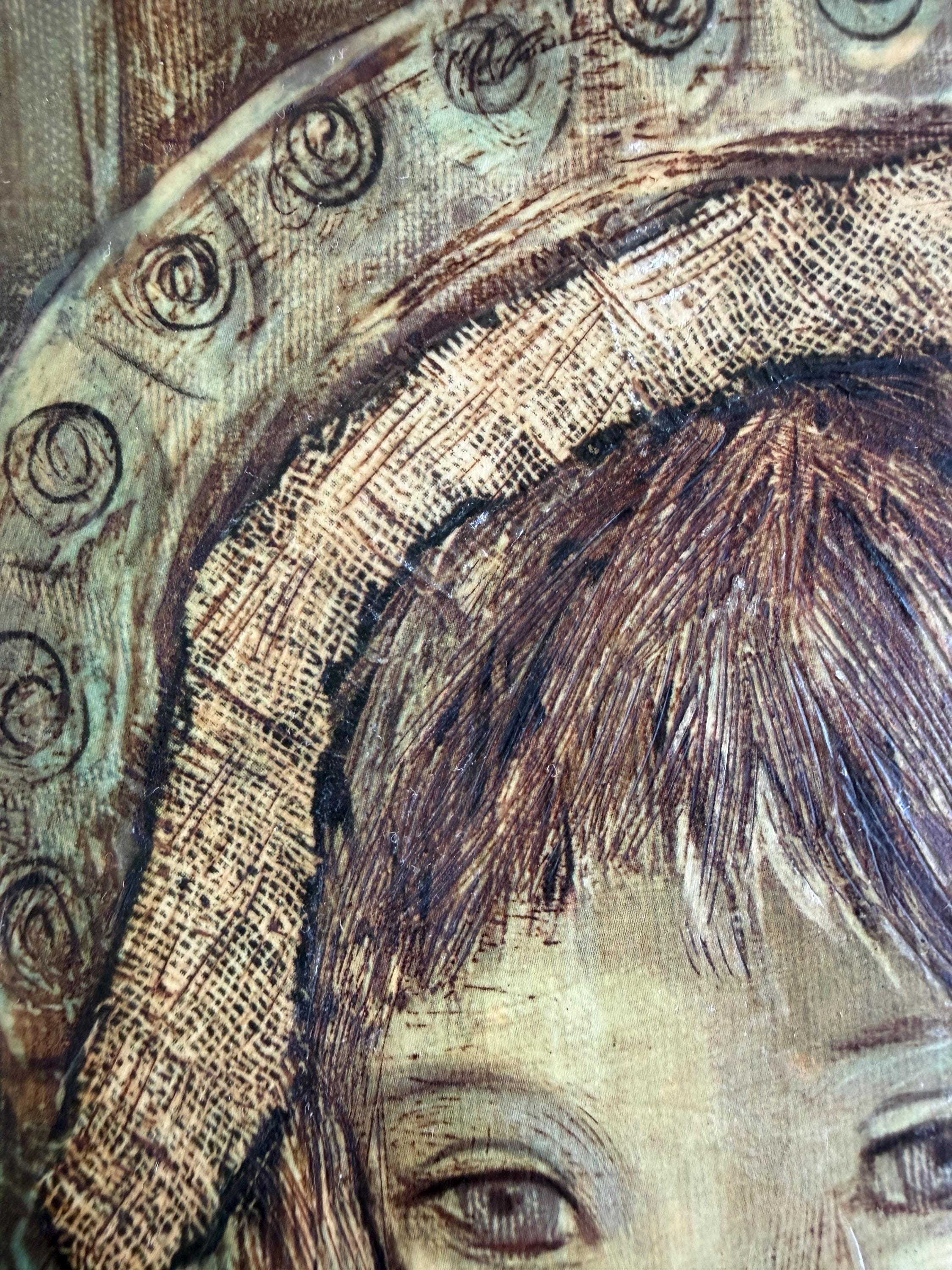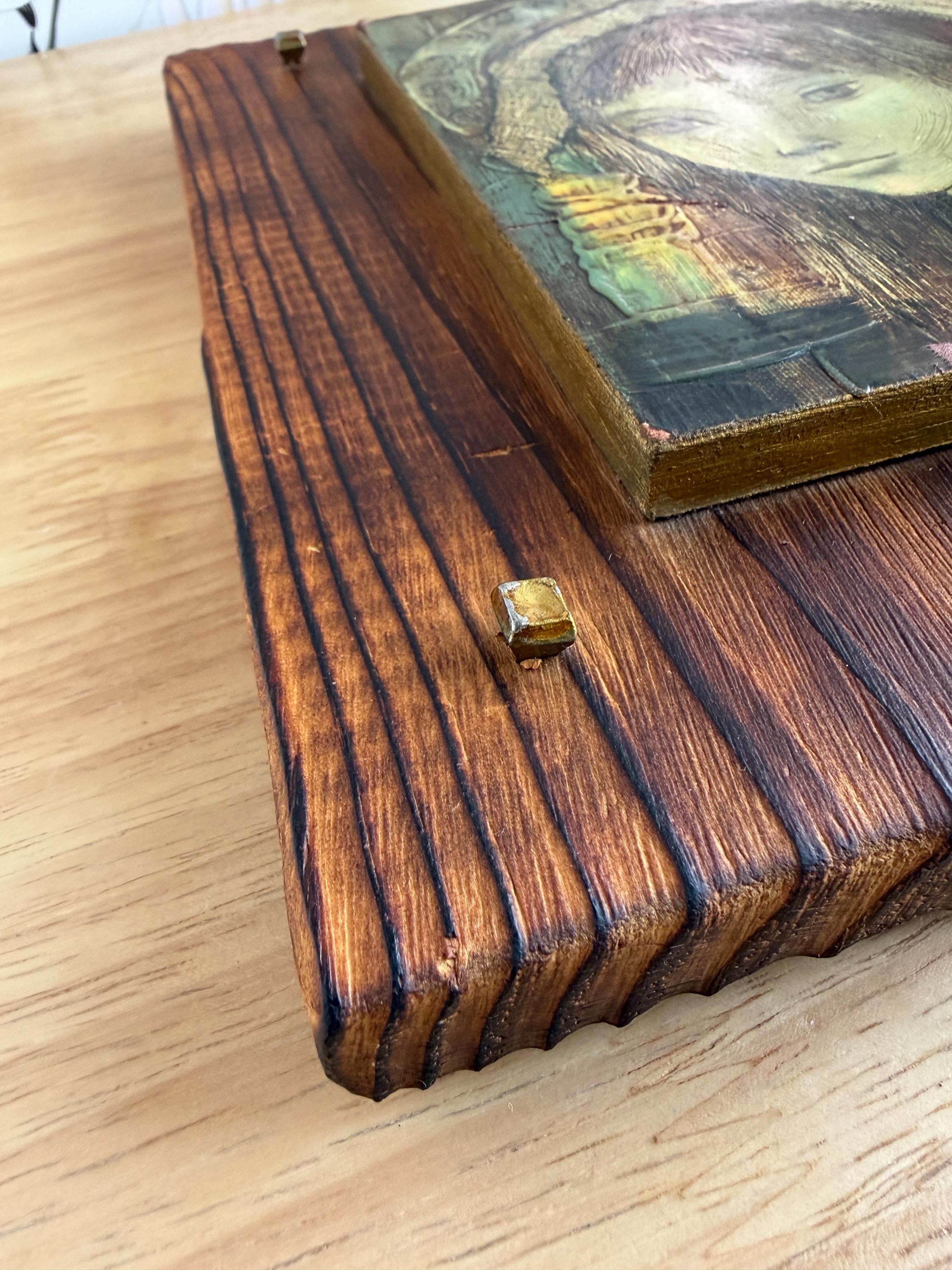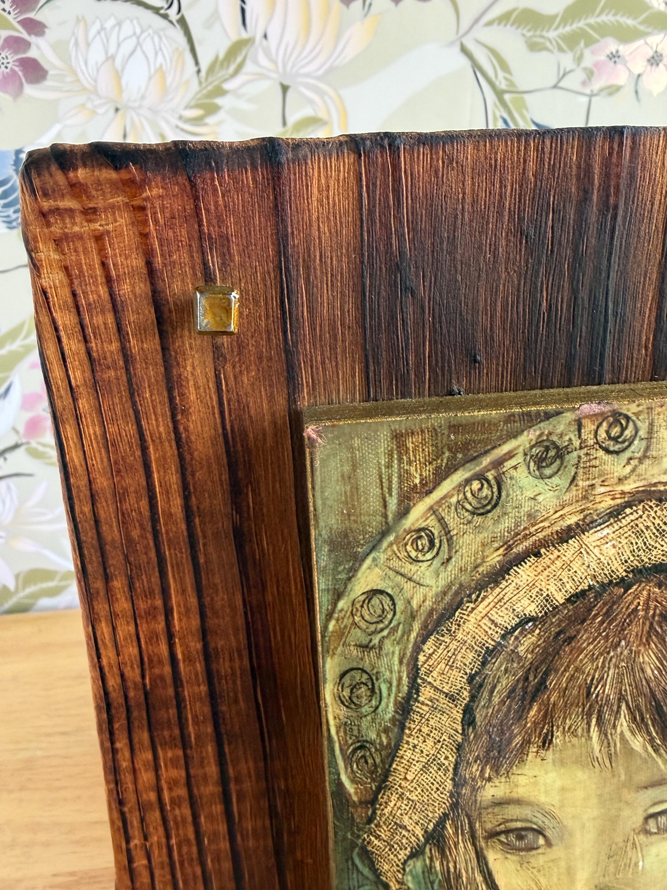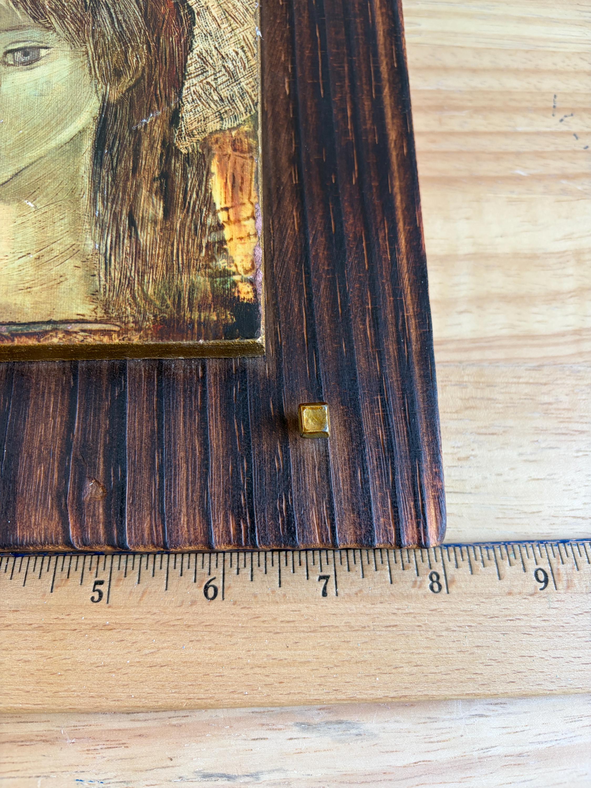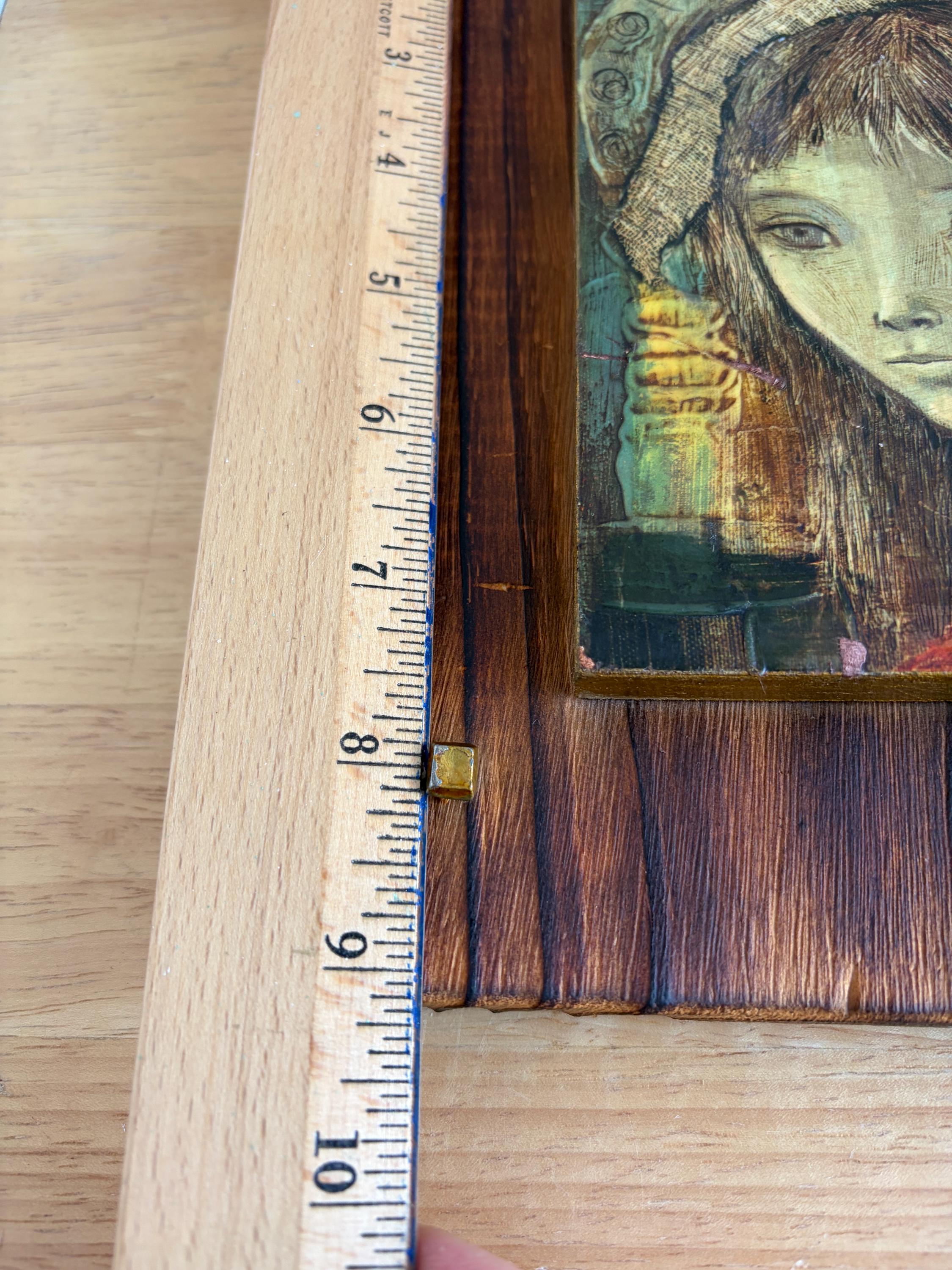 Vintage giclee on board of Spanish artist Rose Agell’s “Madonna.” This is a beautiful and moody piece of brutalist art that would be an amazing addition to a gallery wall or bookshelves. Board is 8 by 9 inches and the giclee on board is approximately 6 by 7 inches.